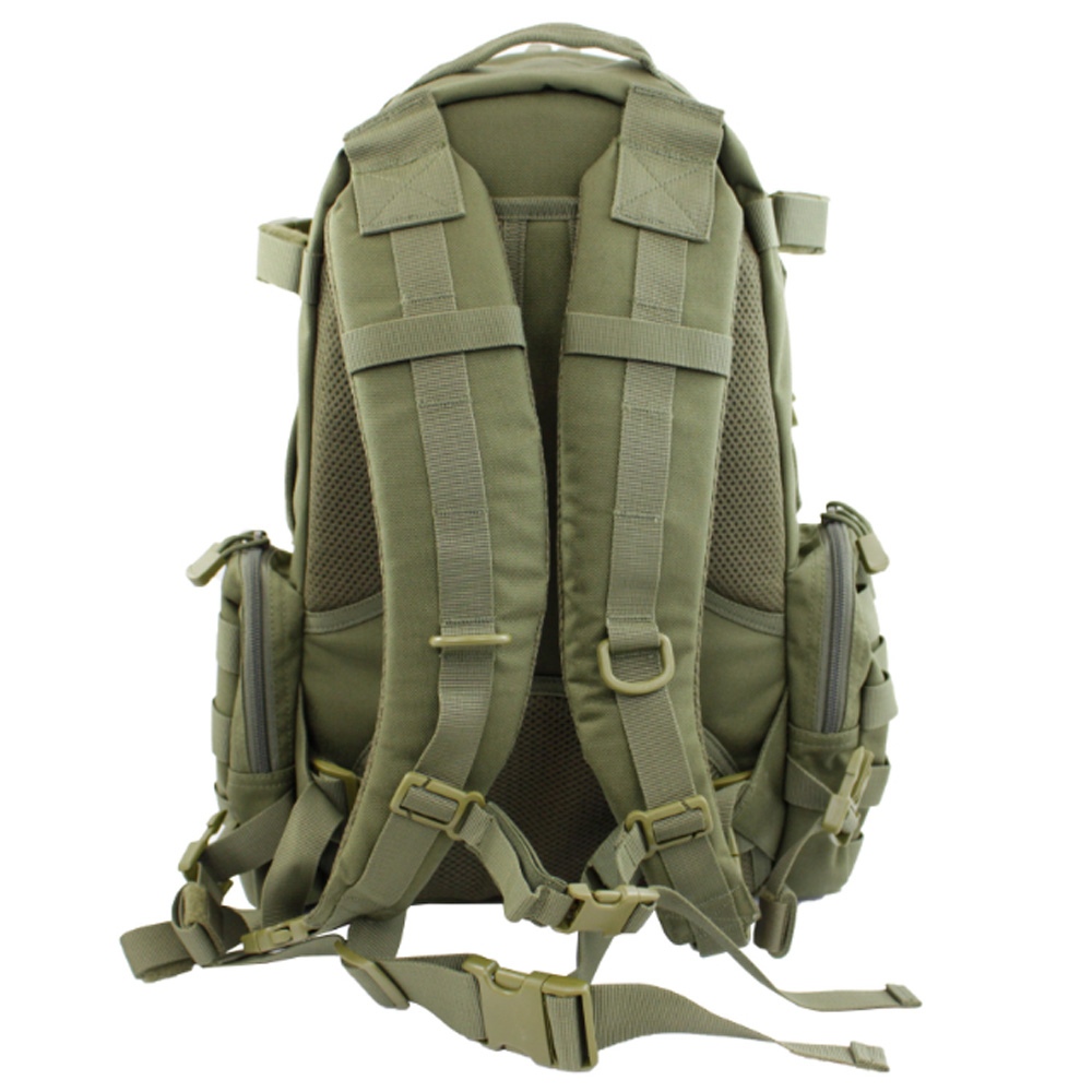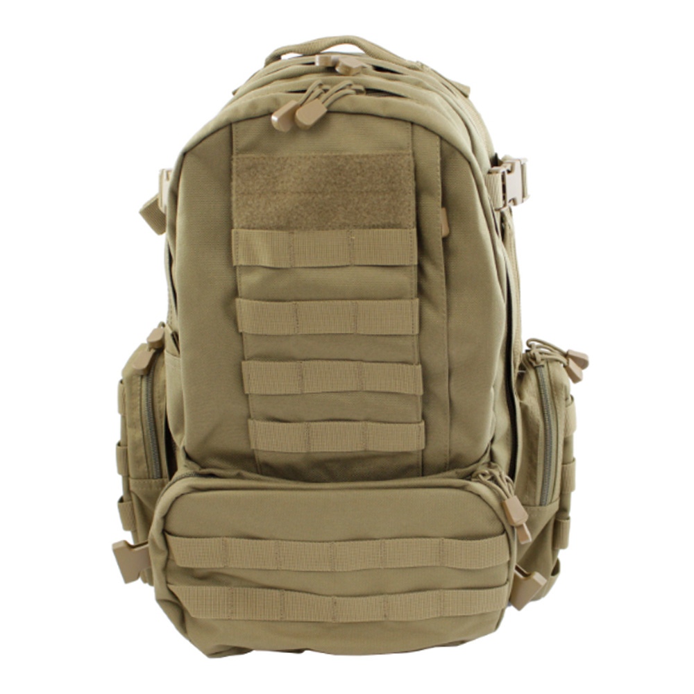 1 Day Assault Backpack, Featuring durable PVC nylon construction and heavy-duty zippers all the way around. The backpack can be used for hunting weekends, camping trips, hiking/trekking, travel, and more. The main compartment is very spacious with the secondary compartment having numerous internal pockets to help you organize your gear. Adjustable padded shoulder straps, a sternum strap, and a padded hip belt allow for a very comfortable & stable load-bearing platform. Side compression straps also help keep your load tight and as close to your center of gravity as possible.
