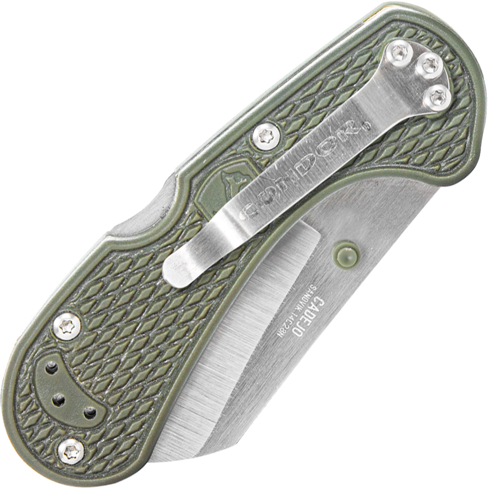 Presenting the Cadejo Cleaver folding knife—a testament to craftsmanship, mythology, and practicality. Inspired by the ancient legend of the Cadejo, a guardian spirit in Salvadoran folklore, this knife embodies the spirit of protection and vigilance in a modern, versatile design. Crafted with precision, the blade is constructed from Sandvik 14C28N Stainless Steel, measuring 2.82 inches (71.7 mm) in length and boasting a polished finish for a touch of sophistication. Be ready for the legacy of the Cadejo