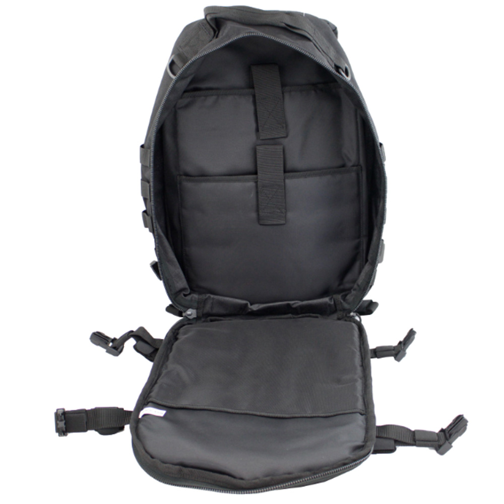The organization is made easy with a fleece-lined gadget pocket, a secondary compartment featuring an organizer panel, and zippered mesh pockets. Comfort is ensured with an air-flow system on the back, enhancing ventilation and support, alongside a detachable waist belt, a sternum strap for balanced load distribution, and side compression straps for volume control. The pack also includes a hook and loop ID panel, grommets in all compartments for drainage, and a MOLLE front panel for additional gear attachment. Perfect for tactical use or daily wear, this backpack is a fusion of functionality and rugged style.