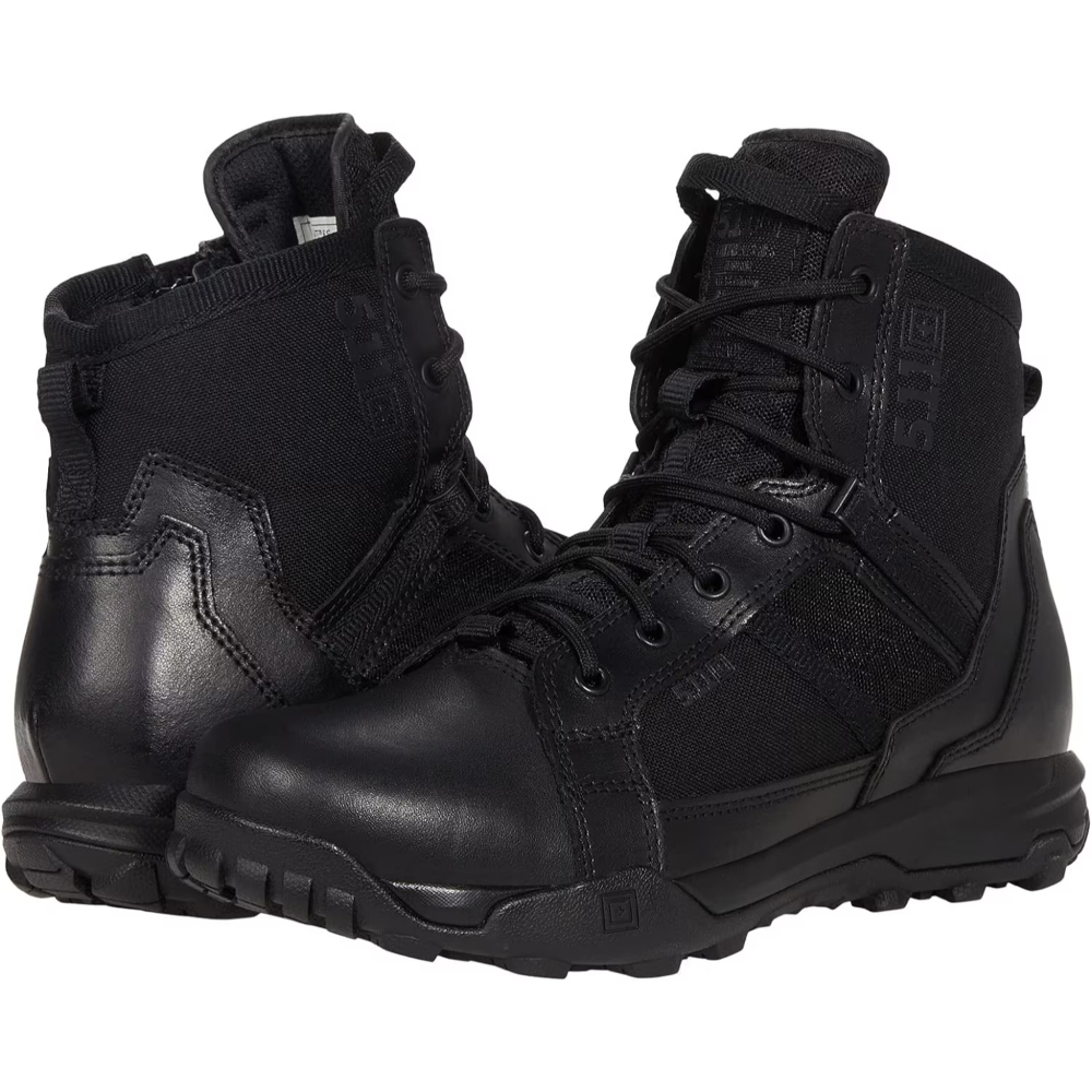 The 5.11 A/T 6” Side Zip is a performance boot built from the sole up to increase performance. The All Terrain Load Assistance System (A.T.L.A.S.) is a force multiplier for those who carry heavy weight on long shifts. The boots were developed to work with your "work weight". This boot is constructed of nylon with high abrasion air mesh, a water resistant leather upper, and because so many professional jobs demand it - a polishable toe. Additional features include a YKK® side zipper and a locking ankle eyelet, and a high traction outsole so you can take those corners in a foot pursuit or run headlong into whatever challenge you’re up against.