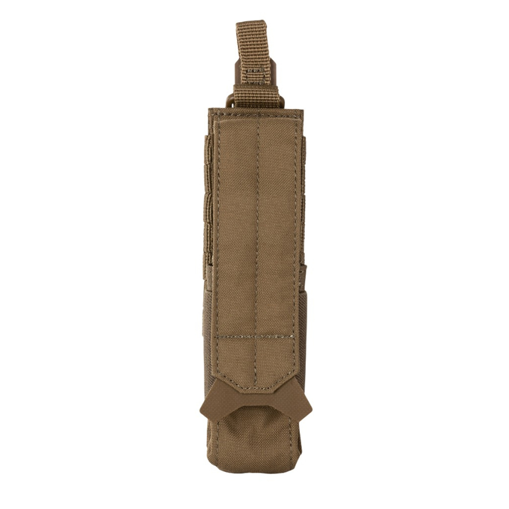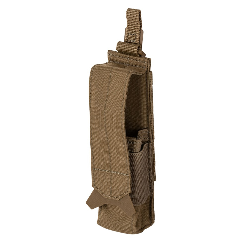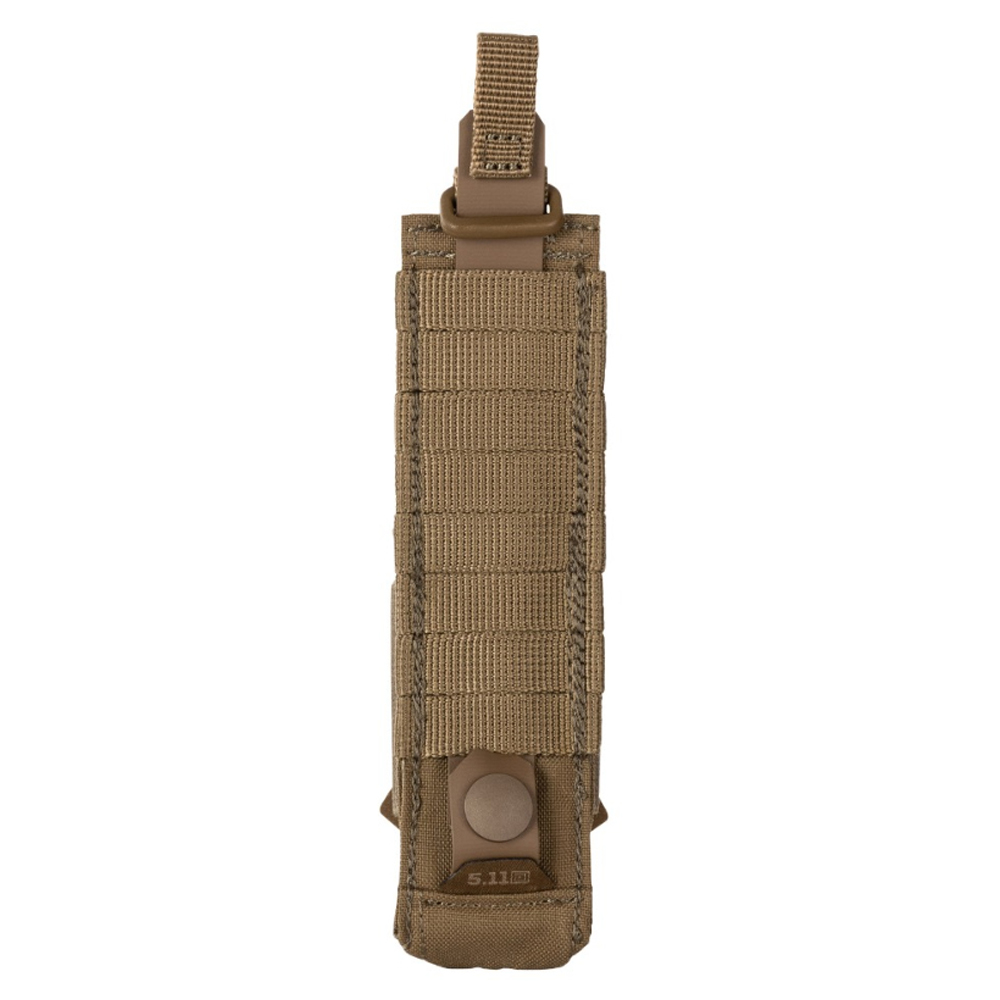 Keep your tactical light always ready with our Flex Flashlight Pouch. Featuring a tough 500D nylon body and internal webbing reinforcement, the Flex Flashlight Pouch is built to withstand heavy use in the field. Utilize the cover flap with an easy grab Hypalon® pull tab or tuck in the flap for quick access thanks to the compression elastic webbing keeping your light secure. Easily attach the Flex Flashlight Pouch to your rig using the FLEX-HT™? Mounting System and get ready to move. Once size fits most tactical-style flashlights. Imported.