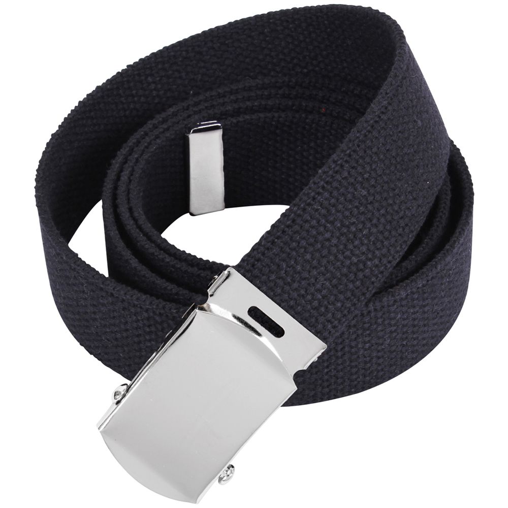 Military Web Belts are 100% Cotton, 1.25" wide and come with a choice of gold or chrome buckles in a variation of colors. All belts featured here are available in 54 Inches.