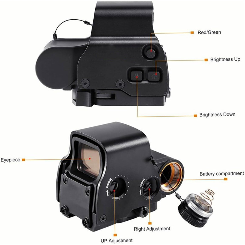The 558 Red/Green Dot Holographic Sight is a high-performance optic designed for both hunting and airsoft applications. With a 1x zoom capability, it ensures quick target acquisition and pinpoint accuracy. The option to switch between red and green dot reticles makes it adaptable to various environments, making it an essential companion for any rifle enthusiast or airsoft player seeking precision and versatility in their shooting experience. The red dot is not obvious during the day. It is recommended to use the green dot during the day and the red dot at night. 558 scope is a holographic scope. Its red and green dots are relatively large. You will feel that there is no obvious change during the adjustment process.