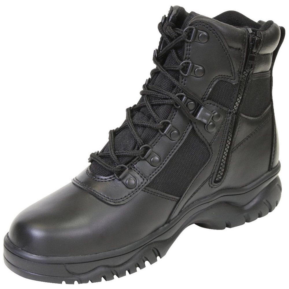 This tactical boot comes in black color with 6 inches of height. It is waterproof and blood- born pathogen membrane mixture. The boot is constructed from leather and the top portion is made from nylon. The shoe collar is also made from leather material. It comes with D-Ring type of holes. It has a YKK side zipper as well as hook & loop closure tab. It also has a steel shank as well as gusseted tongue. This high quality boot has removable insole with moisture wick lining. It comes with rust proof stuff and slip resistant bottom part. This is a great choice to use during the rainy and icy weather conditions.