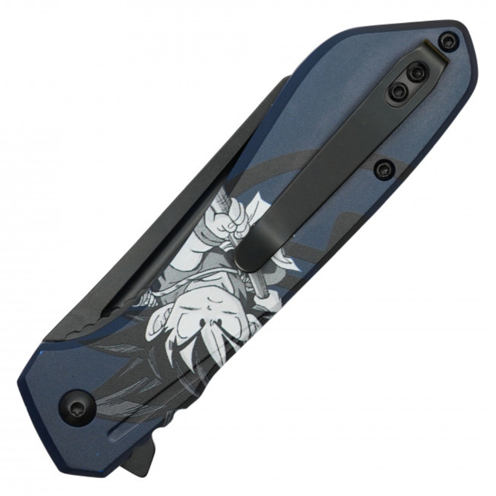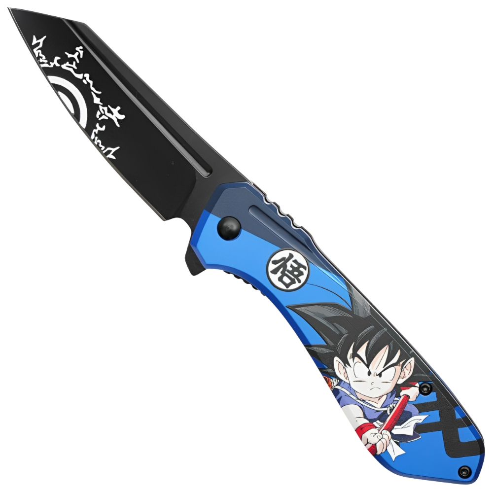 Take Your Knife Collection To The Next Level With The 7.75" Blue Son Goku Pocket Knife! This High-Quality Pocket Knife Features A Sharp 3.25" Black Steel Blade, Ideal For Everyday Tasks, Outdoor Adventures, And Display. The 4.5" Blue Handle Boasts A Vibrant Son Goku Print, Giving It A Unique And Bold Look. Built With A Secure Belt Clip, This Knife Ensures Easy Access And Reliable Performance Wherever You Go!