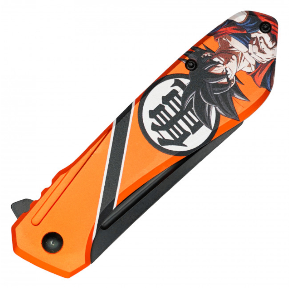 Add Some Saiyan Power To Your Gear With The 7.75'' Orange Goku Folding Knife! This Anime-Inspired Blade Features A 3.25" Black Steel Blade With A Unique Print, A Stunning 4.5" Striped Orange Handle Showcasing Goku’s Iconic Look, And A Belt Clip For Easy Carry. Whether You’re Cutting, Collecting, Or Showing Off Your Fandom, This Knife Is A Must-Have!