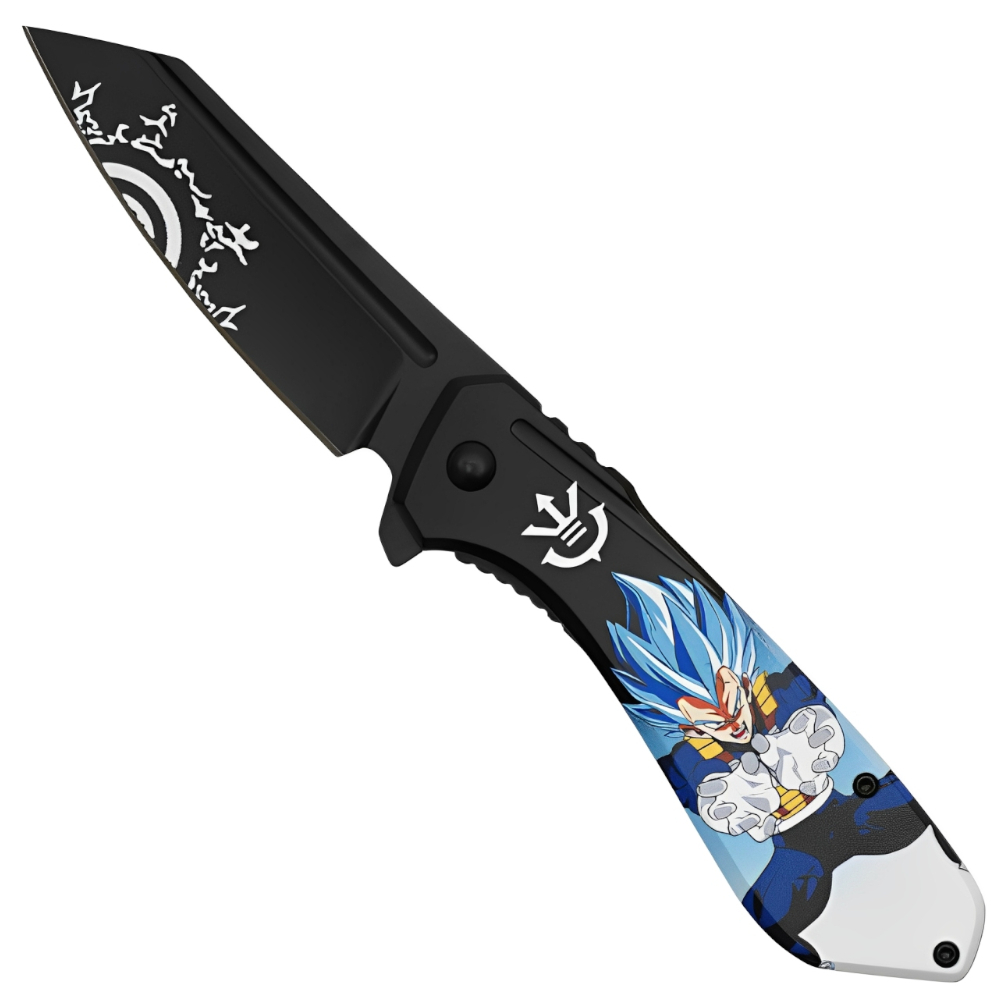 Channel The Power Of Super Saiyan Vegeta With This Epic Pocket Knife! Designed For Tactical Users And Anime Collectors, It Boasts A 3.25” Black Steel Blade, A 4.5” Black Handle Featuring A Stunning Vegeta Print, And A Belt Clip For Secure Carry. This Knife Is A Must-Have For Fans Who Appreciate Both Art And Functionality!
