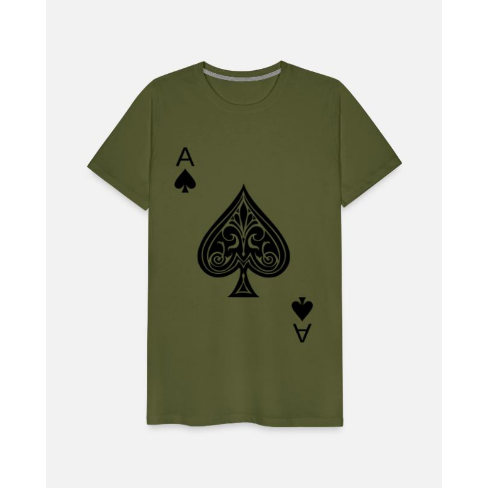 Elevate your style with our Round T-Shirt, available in both classic white and earthy olive drab, featuring a captivating ace card design. This shirt adds a touch of intrigue to your wardrobe, allowing you to embrace the card player's charm in two versatile colors. Choose your favorite and make a bold fashion statement.
