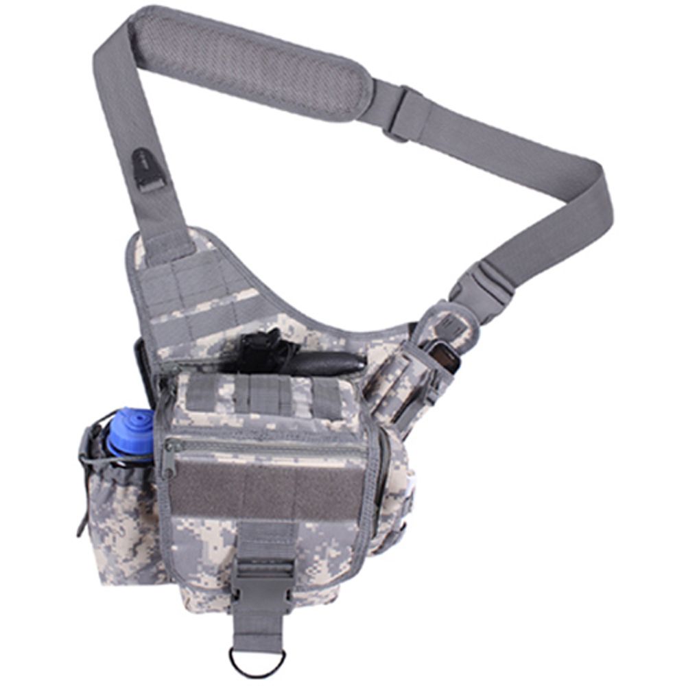Advanced Tactical Bag Is MOLLE Compatible Bag And Features 2 Inch Wide Adjustable Padded Shoulder Strap, Large Side Pouch, Smaller Side Pouch And Front Flap Closure With Two Exterior Pockets. Main Interior Area Has Two Inside Pockets And Close Top And Exterior Cell Phone Pouch. Rear Zipper Pocket W/Hook And Loop Area Is Ideal For Concealed Carry.