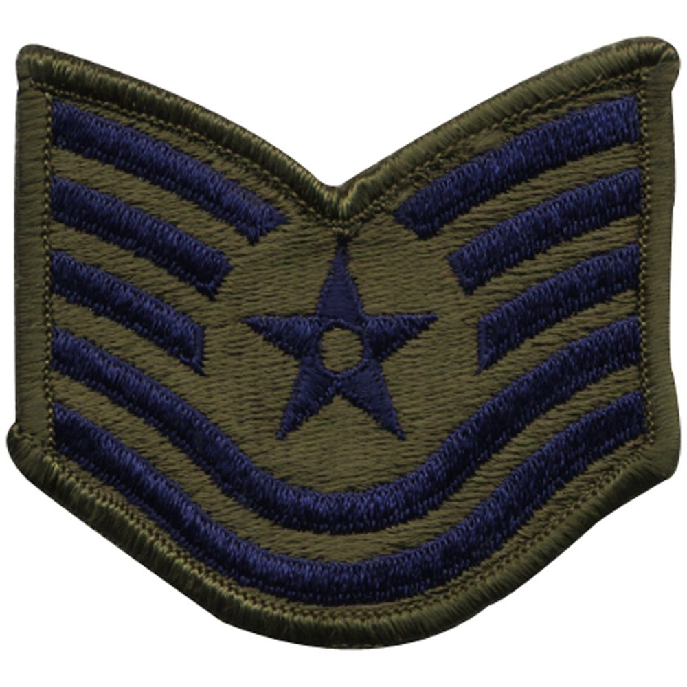 Patch Air Force Technical Sergeant Subdued is an Iron on/ sew on/ glue on based embroidered patch widely used by military personnel. Every patch has a blue outlined three chevrons which have an encircled star at its point followed by two curved chevron below the star. The whole design is made of blue embroidery on an olive drab background. This kind of patch is used by the Technical Sergeant, a sixth enlisted rank in the United States Air Force. They are generally used to differentiate the ranks among officials and are sewn or stuck to the sleeves of the uniform.