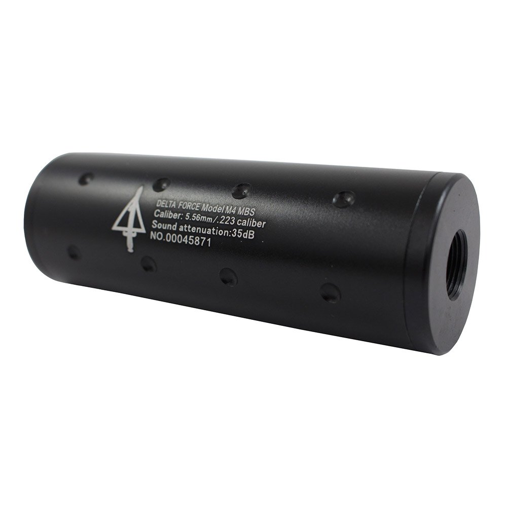 The Airsoft Mock Dimpled Barrel Suppressor has a large diameter to align with rails. The dual 14mm CW/CCW thread allows it to be fitted on most airsoft rifles. Available in 4 popular patterns to allow you to show your pride. 110mm long with a 35mm diameter aids in protecting extended inner barrels.