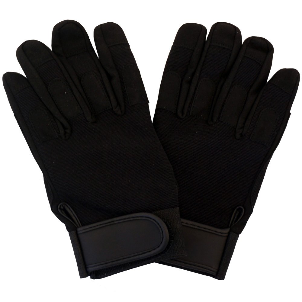 Tackle your next job with these Lightweight All Purpose Duty Gloves. Comfortable and durable, the gloves are great for taking on tactical tasks and everyday chores. The polyester spandex material is reinforced with synthetic leather palm patches and foam laminated finger pads for increased protection. Elastic cuff and velcro closure make it easy to slip the gloves on and off in a flash. Available in black, tan, OD green, and foliage green.