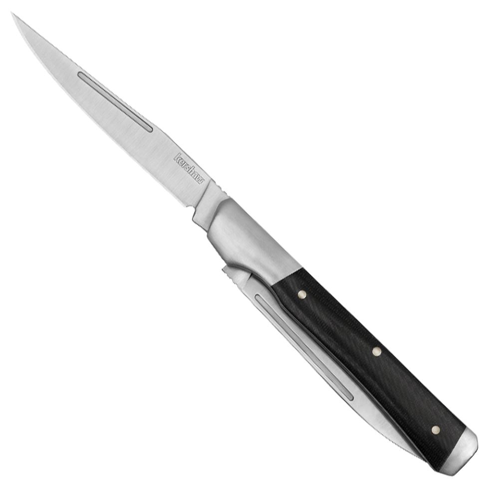 Tackle a multitude of work projects with the two-bladed Allegory non-locking slipjoint. Inspired by traditional doctor’s knives, the Allegory includes a clip point and spear point blade for everyday tasks and detail cutting. Its polished micarta handle feels smooth in the hand and is pleasing to the eye. Steel bolsters and liners help add a solid feel to this highly capable slipjoint. In fact, the Allegory is solid all around – a worthy piece for any Kershaw collection.