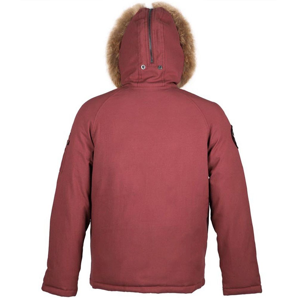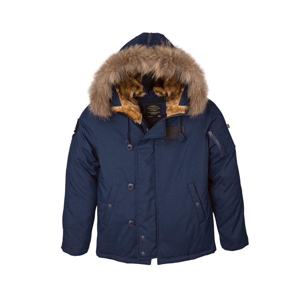 We upgraded our N-2B parka with an oxford nylon shell, down/feather lining, and a genuine fur-trimmed hood. The split hood is lined with faux fur and unzips to lay flat. The car-length parka has fleece-lined slash pockets along with Alpha’s signature zippered utility/pencil pocket on the sleeve.