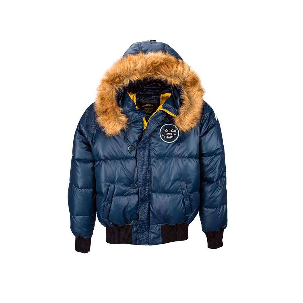 A puffer version of our N-2B parka that features a contrast lining and zipper. The Sonic parka has a poly/down fill along with adjustable hood with faux-fur trim, storm flap and knit cuffs and waistband for extra warmth. The embroidered chest patch and Alpha logo sleeve patch add nice detail to the parka.