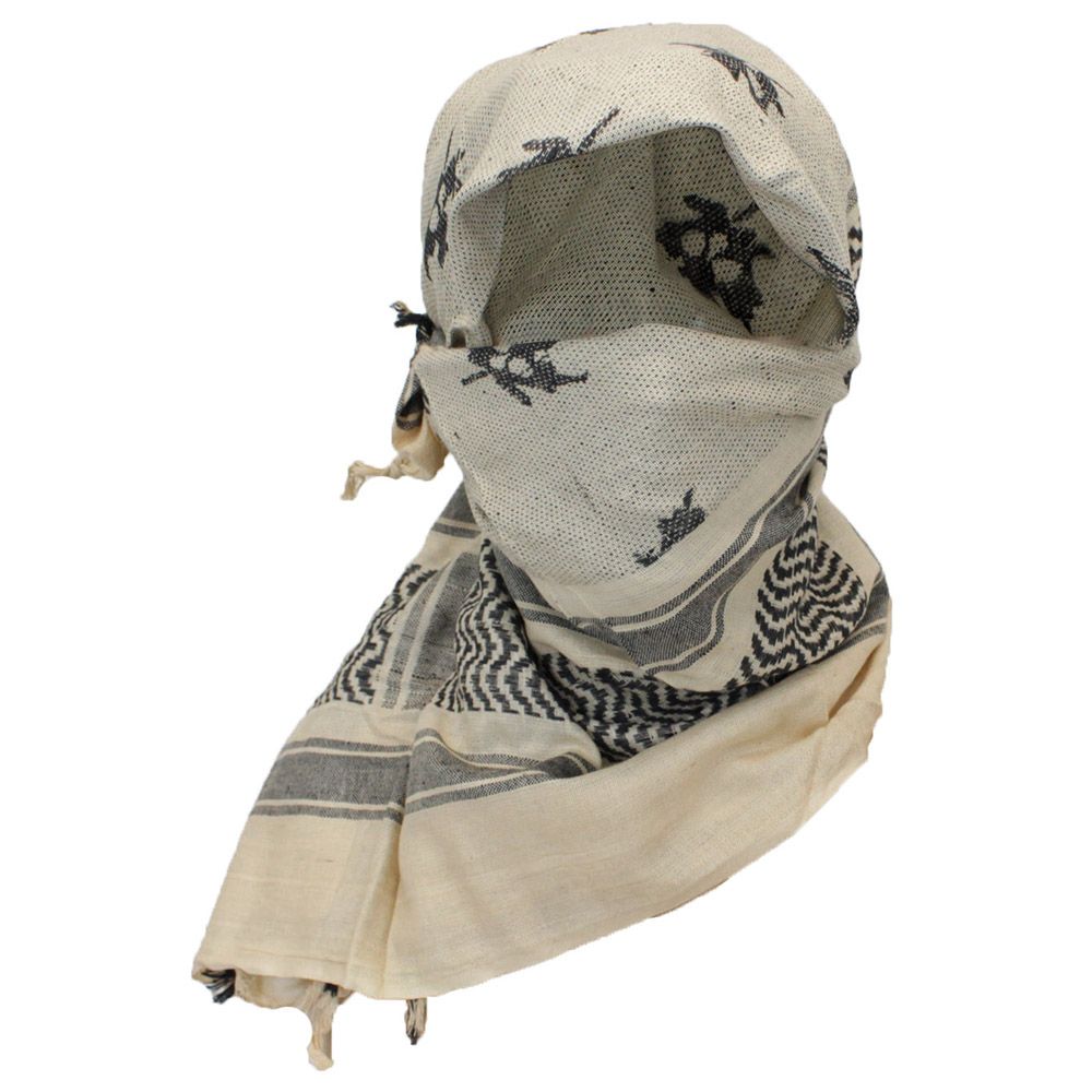 The Shemagh is more than a fashion statement. This traditional Arab scarf provides protection from sun, dust, extreme temperatures, and can also function as an emergency bandage or arm sling. The uses for this versatile cloth are virtually endless. Measure 44" x 44".
