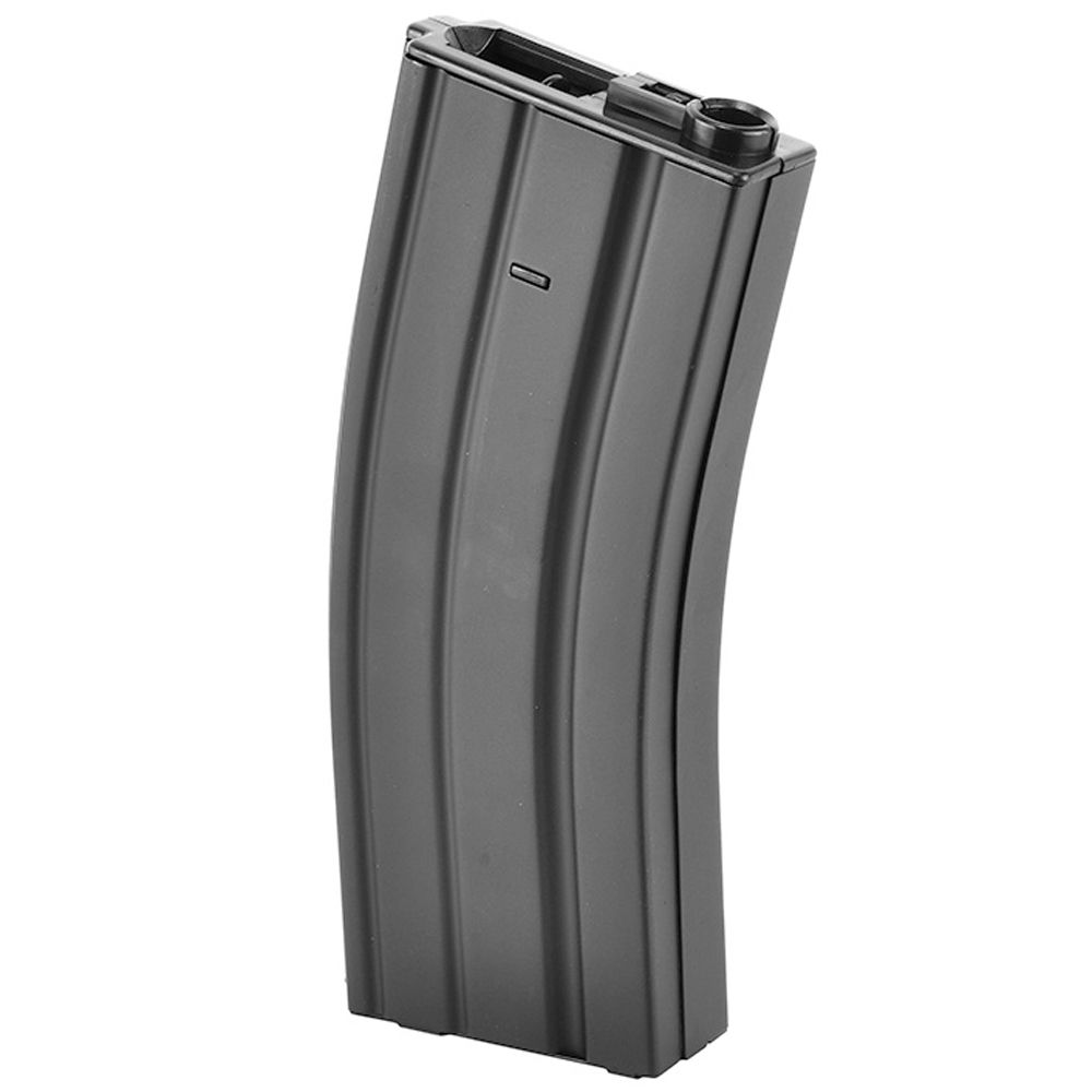 A Proline Armalite M4 with the massive looking yet remarkable lightweight S.I.R. system fully licensed by A.R.M.S. Made famous by US special forces, the S.I.R. system was one of the very first free float rail systems that allows a customized set-up of tactical accessories. On this Airsoft gun the SIR (Selective Integrated Rail) allows super easy access to the battery compartment in the front.