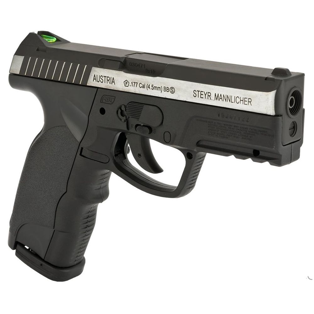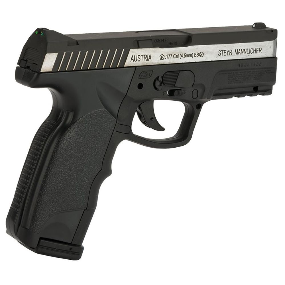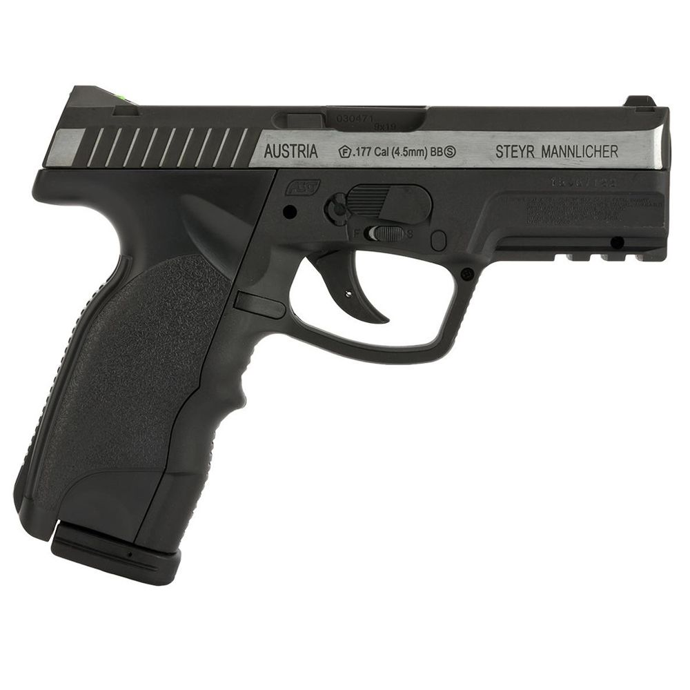 This semi automatic BB gun is an authentic replica of the latest Steyr Mannlicher pistol – the M9-A1. It features a lightweight polymer frame and a sleek metal slide engraved with fully licensed CZ trademarks. With a muzzle velocity of 450 FPS, it's one of the hardest shooting airguns. The ergonomic grip has been designed at an 111 degree angle to improve ergonomics. It comes equipped with a rear fiber optic sight and weaver accessory rail to mount laser and flashlight. The 19 BB’s are stored in the drop-out magazine and the 12g CO2 cartridge is placed in the easyload grip and is easily changed.