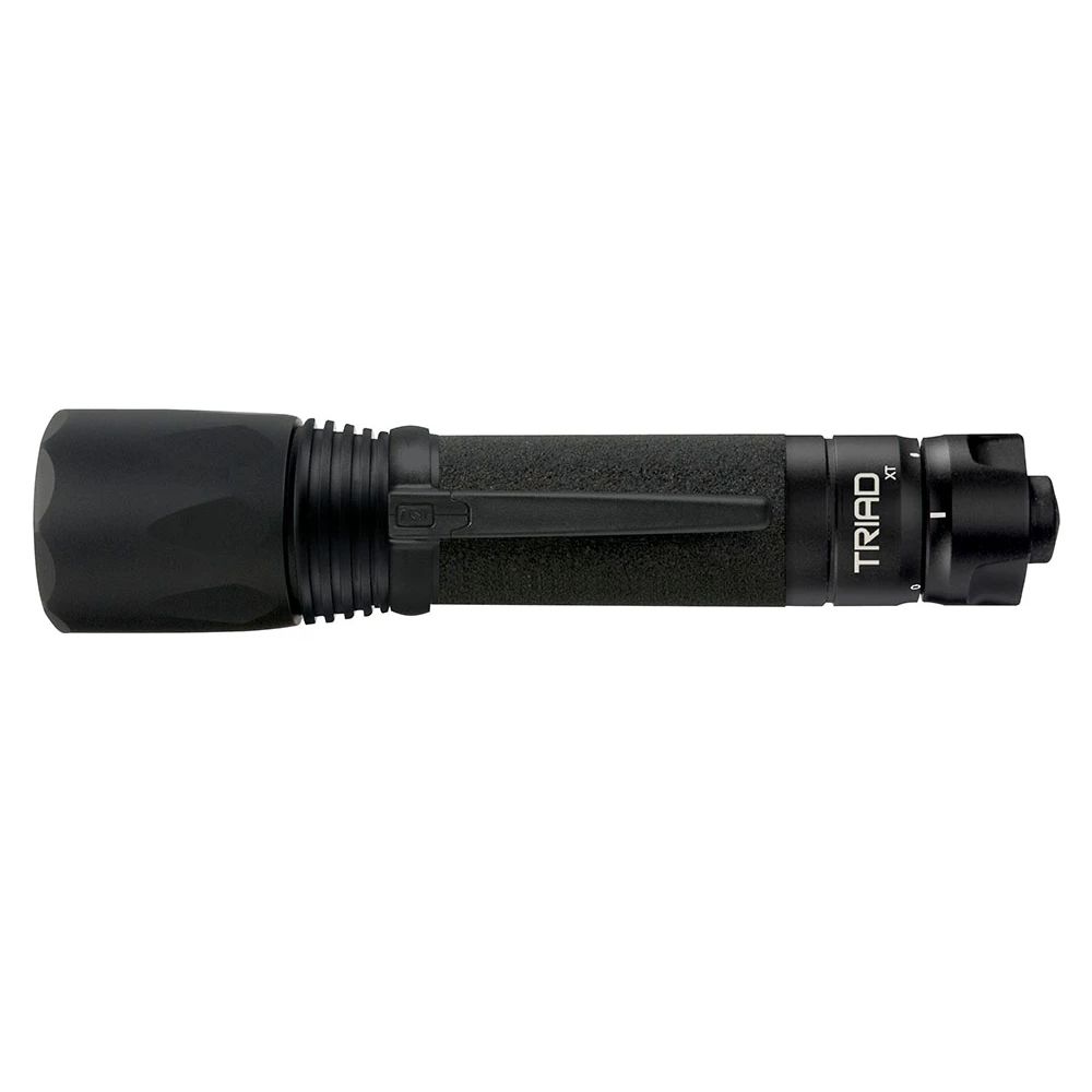 The XT DF has a maximum brightness (primary setting) of 600 lumens, with a secondary light level that’s user-programmable at 15, 60, or 150 lumens, or strobe. In keeping with our emphasis on intuitive design and simplicity in our law enforcement tools and training, activation is via a single pressure switch on the tail cap—press once to activate the primary/max setting, twice (“Double Tap”) to activate the user-programmed secondary mode. Setting the secondary light level takes just seconds?simply twist the bezel open to activate programming mode, tap through the levels until you reach your chosen setting, and twist the bezel closed to lock it in. A 3-position twist selector on the tail cap allows choice of intermittent, constant-on or locked. Dual Fuel technology means you'll never be without a power source?it runs with either a rechargeable 18650 battery (included) or 2 CR123A primary (single use) cells, sold separately. The 18650 battery charges inside the flashlight, using the supplied cord and adapters, or any micro USB phone/electronics charging cord?no separate battery charger needed. The XT DF is machined from 6061 T6 aerospace aluminum, type III hardcoat anodized in a proprietary matte black finish. The barrel is wrapped in our exclusive, all-weather foamed vinyl grip. Premium components include Cree XPG LED, gold-plated connectors, polished aluminum reflector and optical glass lens. Includes high-performance ASP 18650 rechargeable battery, battery storage case, retractable charging cord, wall adaptor, car adaptor, adjustable/removable pocket clip, and zippered ballistic travel case.
