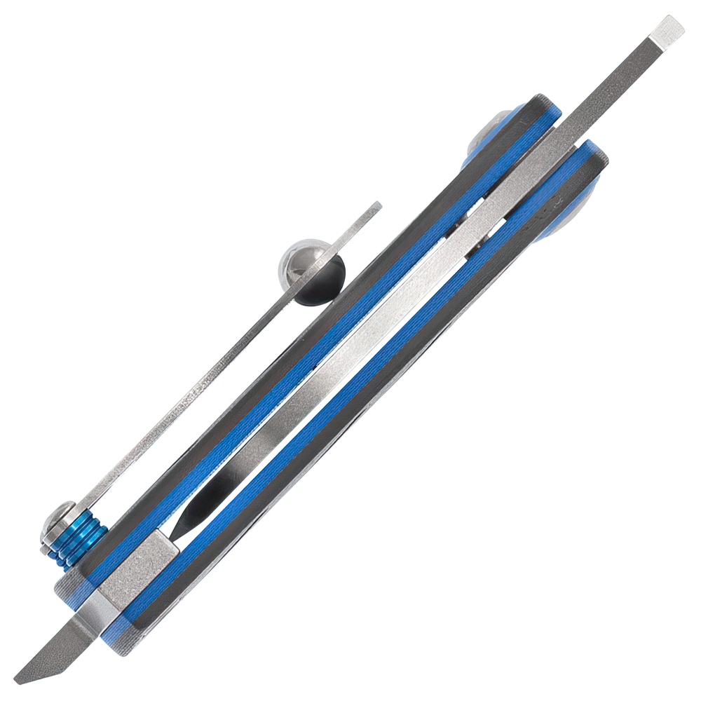Six tools in one small package. Our first collaboration with French knife makers Patrick Famin and Eric Demongivert. Their uniquely shaped Aller was designed with travel in mind. Features on this friction folder include a wharncliffe blade, screwdriver/pry tip, micro bit slot, a custom pocket/money clip, bottle opener, and lanyard/key-ring hole. Legal to carry almost anywhere and useful wherever your travels take you.