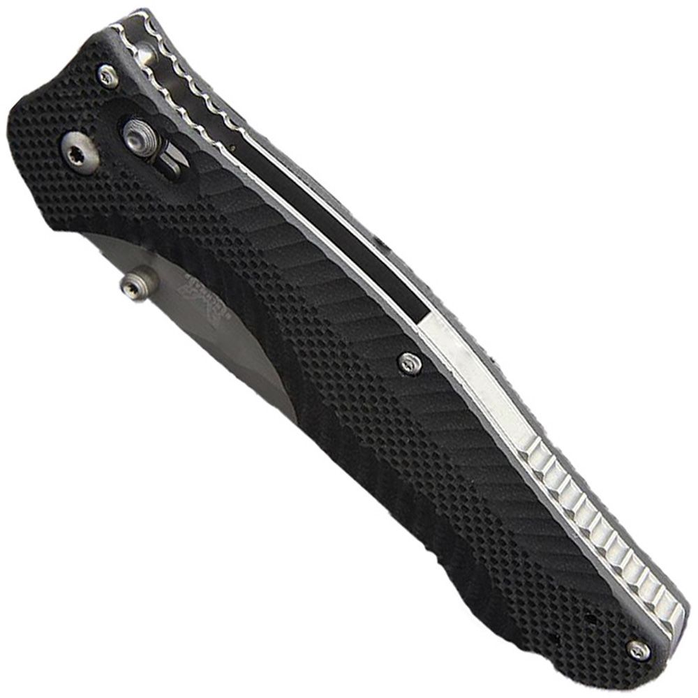 The Contego is a hard hitting tactical folder from Benchmade. The burly reverse tanto blade is made from premium M4 tool steel and is available with a protective black or grey Cerakote finish as well as a plain or half serrated edge. The handle is designed for a rigid forward grip with aggressive texturing, jimping, and a thumb ramp. Equipped with an ambidextrous AXIS lock, thumb studs, and glass breaker, the Contego is an everyday carry problem solver.