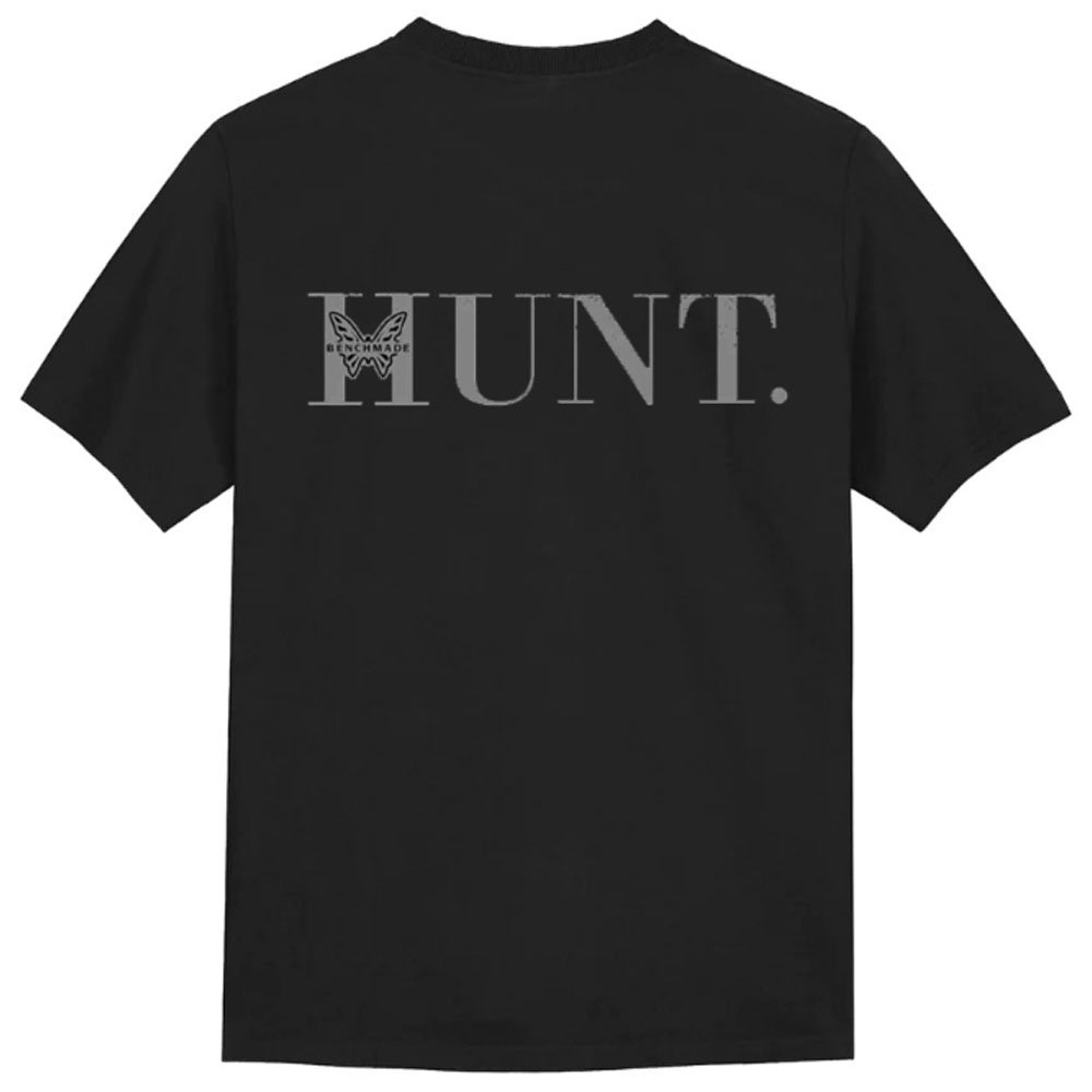 This Benchmade t-shirt features the word "Hunt" written on it, making it perfect for outdoor enthusiasts and hunters alike. The design is simple yet bold, and the shirt is made with high-quality materials for both comfort and durability.