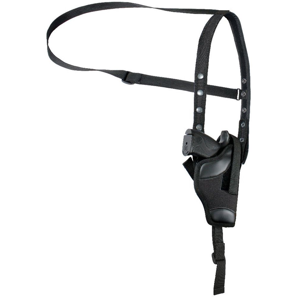 Black Tactical Polyester 4 inch Shoulder Holster made of durable material offers a great way to keep your tactical gear safely and conveniently. It features a protective lining that helps prevent your pistol or revolver from getting scratches. It also has a leatherette trim. The belt strap that comes with the UF-10564 tactical polyester shoulder holster is adjustable. The padded shoulder strap makes it easy for you to carry the holster for a long period of time. The shoulder holster boasts of hook and loop thumb snap for effortless securing. You can also adjust the thumb snap. It features one inch sling as well.