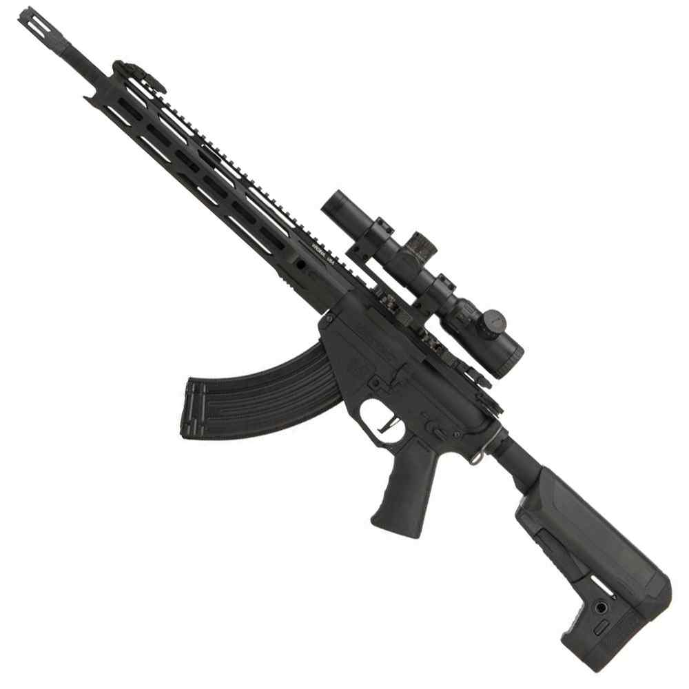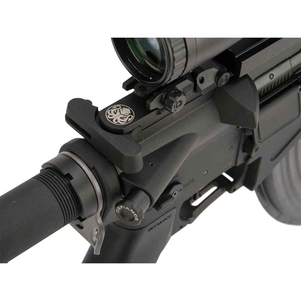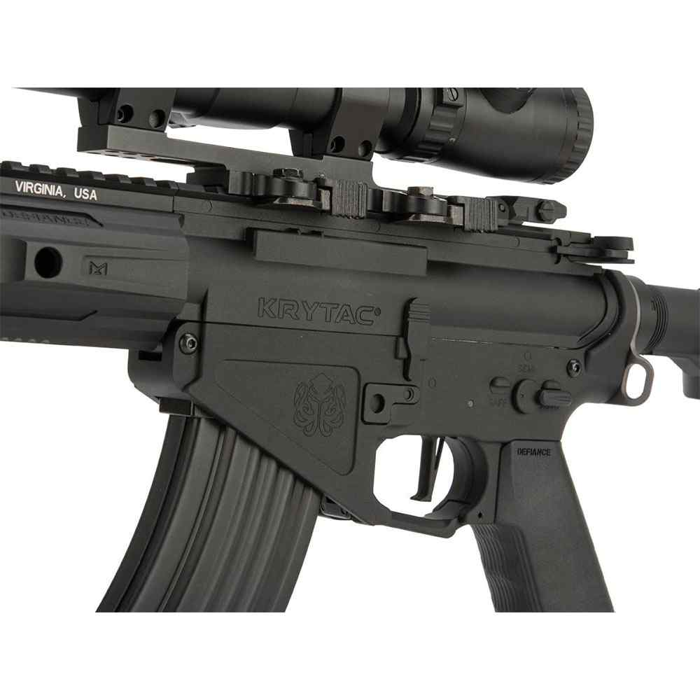 Trident 47 SPR-M is designed to be the ideal scout rifle to take into the field. The 16-inch barrel and 13-inch free-floating DEFIANCE TR213 M-Lok rail system gives the user numerous customization options. The DEFIANCE hand guard features three prongs at the front that can be used to brace the gun against barricades, eliminating the need for an aftermarket barricade stop rail accessory. An originally designed DEFIANCE pistol grip enhances the rifle's comfort. Additional features include an ambidextrous fire selector and a locking bolt that provides easy access to the KRYTAC rotary hop-up system.