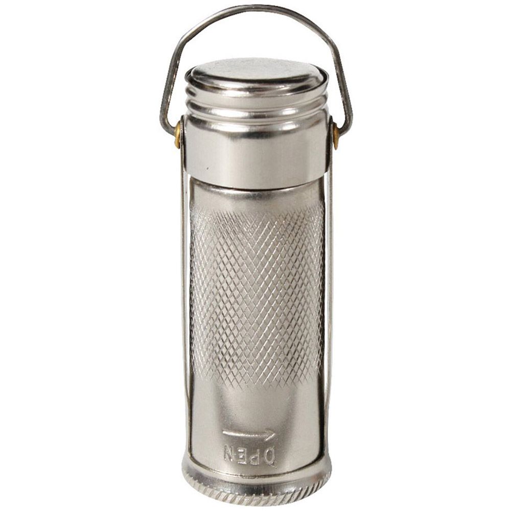 Nickel Plated Brass Match Box , Hinged Top , Cap With Watertight Seal - Twist To Open , Key Ring Attachment , Matches Not Included , 2 1/2'' In Height.