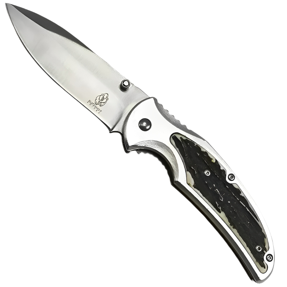 The Buckshot Tactical Folding Knife Delivers Powerful Performance In A Refined Package. At 8 Inches Overall, This Spring-Assisted Knife Deploys With Speed And Confidence, Thanks To Ambidextrous Thumb Studs And Assisted Open Tech. The Faux Stag Inlay On The 4.5" Aluminum Handle Brings A Touch Of Traditional Elegance, While The 3.5" 3Cr13 Stainless Steel Blade Handles Tough Cutting Tasks With Ease. Complete With A Liner Lock And Belt Clip, It's Your Go-To Blade For Everyday Carry Or Outdoor Adventures.