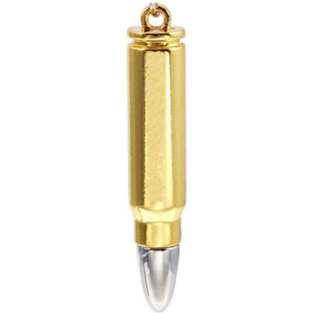 An imitation bullet pendant with top mounted loop. It comes with a strong black cord to wear around your neck.