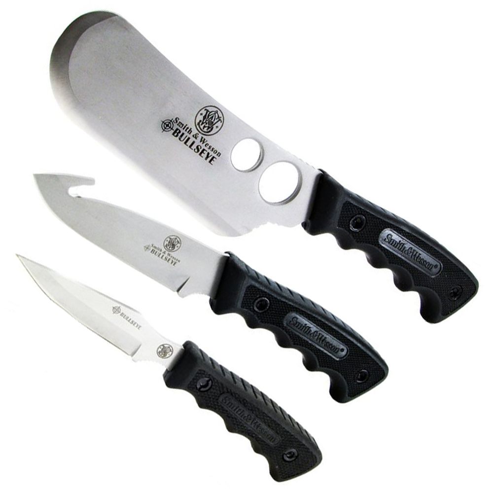 Knife Set, Number of Blades 3, Blade Edge Smooth, Blade Material Stainless Steel, Handle Material Rubber, Handle Color Black, Nylon Sheath, Includes 11 Inch Cleaver for Skinning and Chipping, 9.5 In. Fixed Blade with Gut Hook, 6.5 In. Fixed Blade Knife.