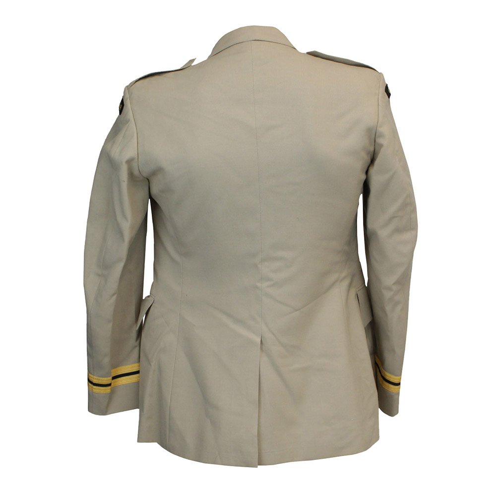 The Canadian Military Surplus DEU Jacket is a smart, military dress jacket that carries both ceremonial authority and tailored elegance. Featuring a light tan tone, this authentic surplus piece has gold cuff rank bands, crisp epaulets, and a traditional four-pocket design that speaks to Canadian military tradition. Ideal for display, reenactments, or formal military wear, this coat is a piece of history that wears well in any setting.