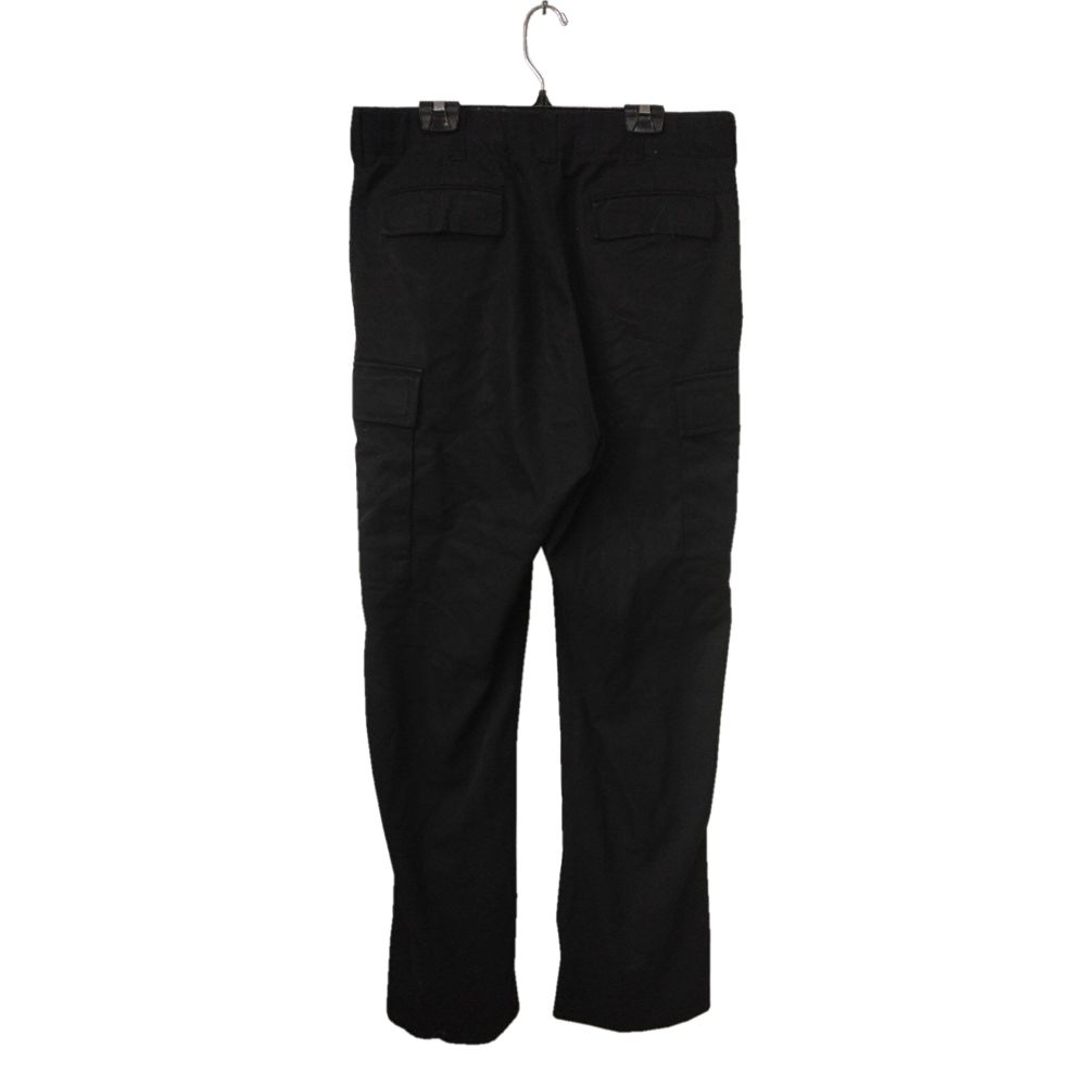 Your basic naval trousers. Cargo pant style with two front hip pockets, two velcro flap rear pockets and two velcro flap leg pockets. Black.