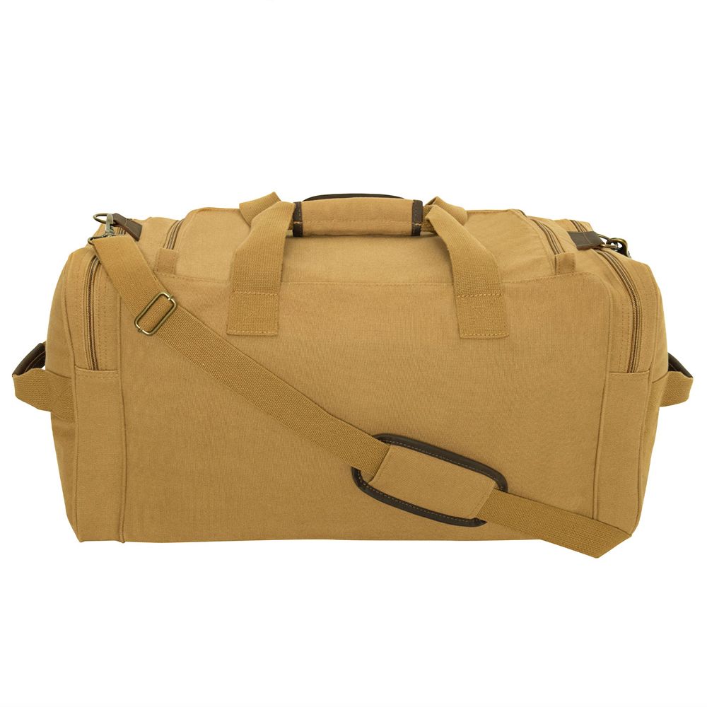 Canvas Long Weekend Bag Is The Perfect Bag For A Weekend Getaway! The Bag Features Classic Canvas, Leather Accents And Antique Brass Hardware.The Bag Features 1 Front Zippered Pocket With Flap And Brass Closure And 2 Zipper Side Pockets, Great For Storing Toiletries And Other Travel Accessories. The Bag Also Features 2 Convenient Carry Handles, An Adjustable Shoulder Strap And Leather Zip Pulls.
