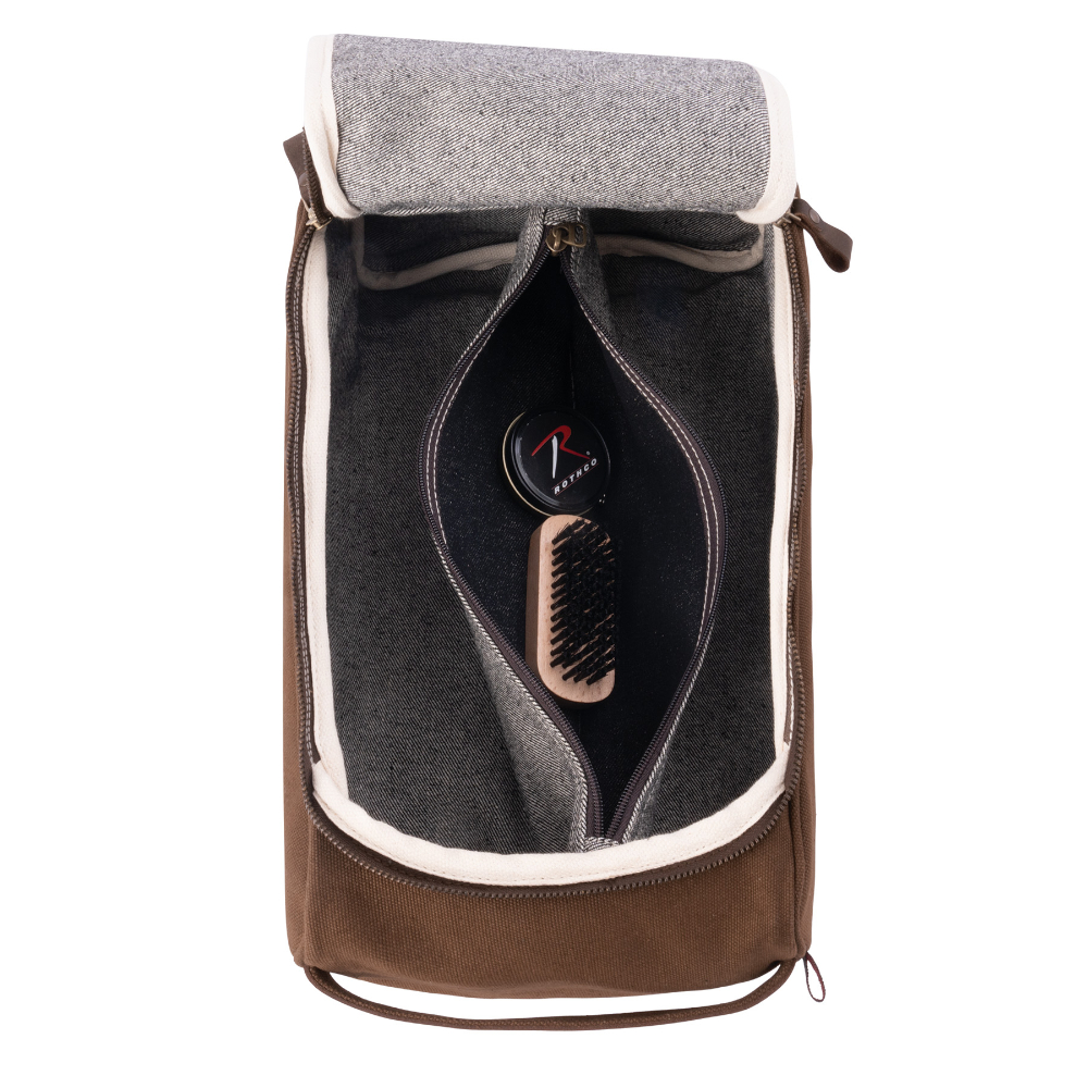 Crafted For Those Who Demand The Best, The Canvas Shoe Bag By Ultra Force Combines Unmatched Durability With Classic Good Looks. Its Rugged Canvas Shell Is Naturally Water-Resistant, While The Contrasting Denim Liner And Leather Zipper Pulls Exude Vintage Cool. Inside, You'll Find A Versatile Zipper Compartment And Foldable Divider That Protects Your Shoes And Optimizes Packing Space. This Shoe Organizer Bag Is Perfect For Sports, Travel, Or Everyday Use – A Truly Awesome Companion That Keeps You Ready, Wherever Life Takes You.