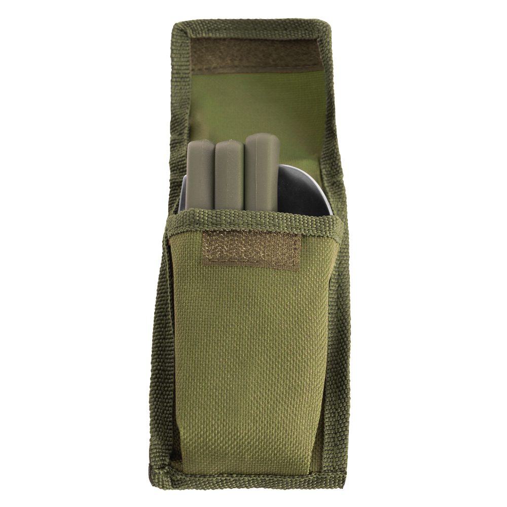 The Chow Set With Pouch is a reliable and compact utensil set designed for outdoor use. With a stainless steel fork, knife, and spoon, it’s perfect for camping, hiking, or keeping in your emergency kit. The folding design makes it easy to store, and the olive drab pouch with a hook-and-loop closure ensures your set stays protected and ready for use. The snap belt attachment allows you to carry it wherever you go.