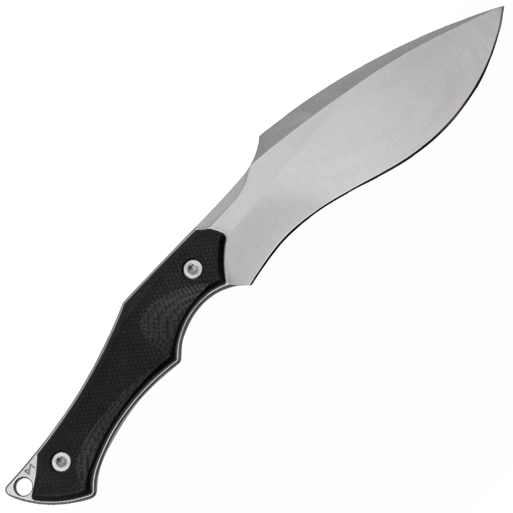 Compact, durable, and built for versatility, Vaquita II is a fixed blade knife that stands out with its sleek design and exceptional functionality. The kukri-style blade, crafted from high-performance Nitro-V steel, is designed to handle demanding tasks while maintaining a sharp edge. Its satin finish not only enhances durability but also gives the blade a polished appearance. The flat grind ensures smooth and precise cuts, whether for intricate work or general-purpose use.