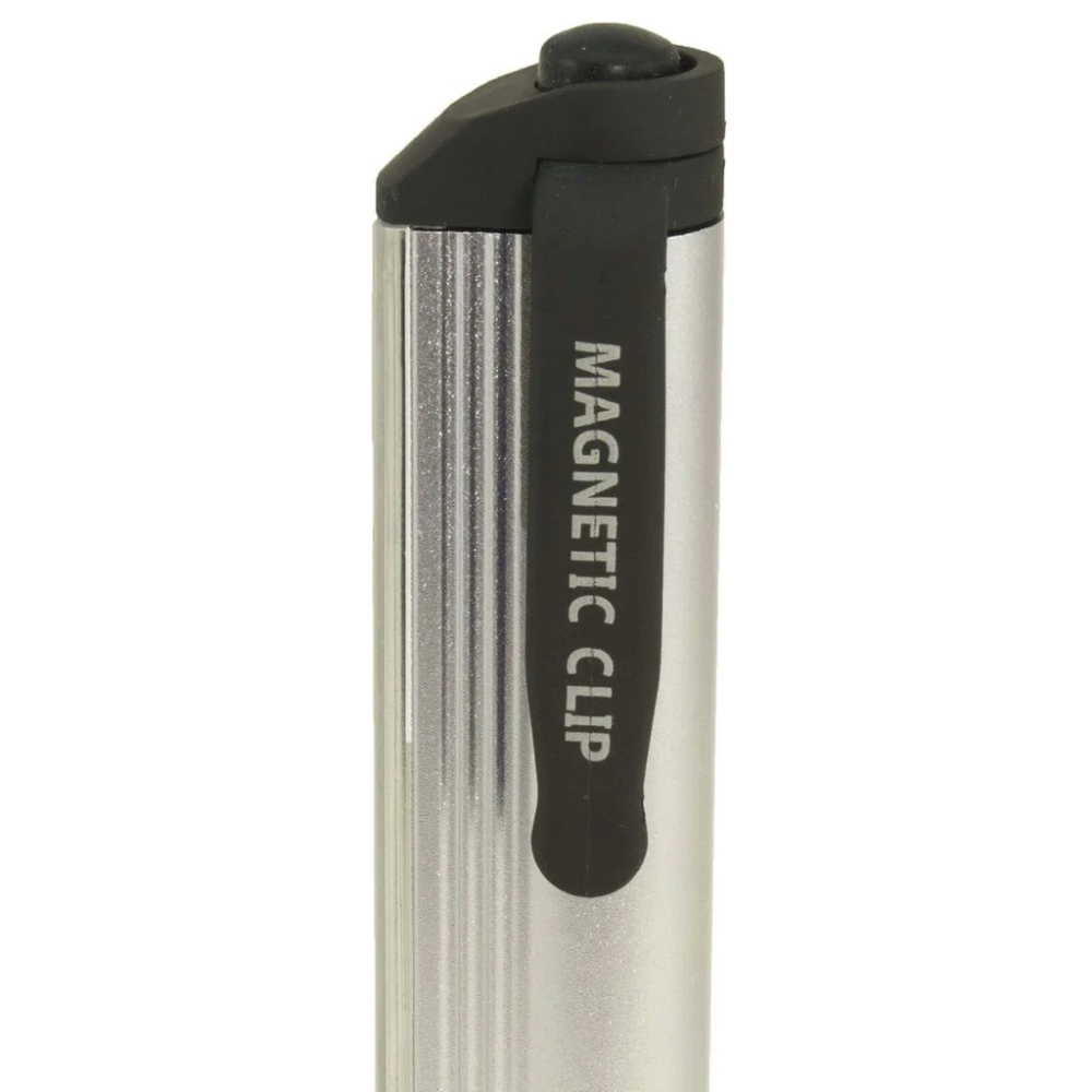 This pen light provides up to 220 lumens of bright white lighting, is light weight and durable and fits comfortably in your shirt pocket. This penlight features a magnetic base plus an integrated rotating magnetic clip to give you convenient hands free lighting options. Use them in your home, vehicle, toolbox and travel bag.