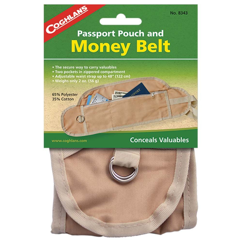 The secure way to carry valuables. Two pockets in zippered compartment. Nylon strap cinches with D-rings. Natural shade helps prevent detection.