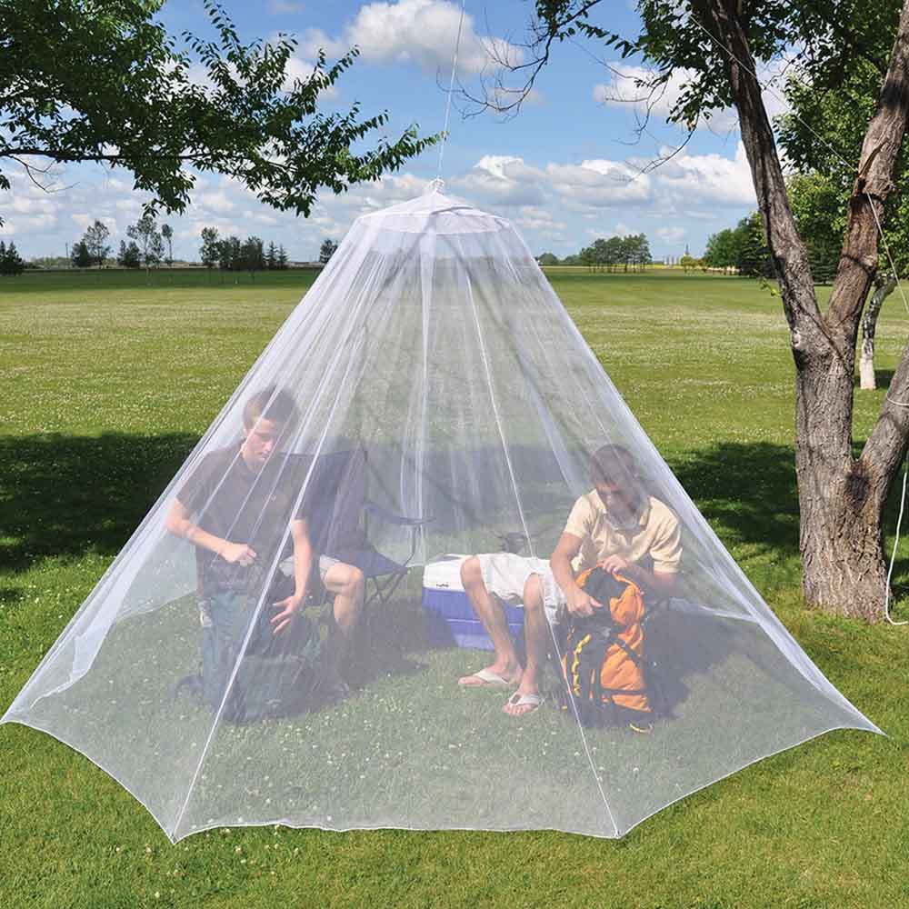 Single point suspension net features a circular shape for all-around coverage. Made from a fine 180-knitted polyester mesh. Carry bag included.