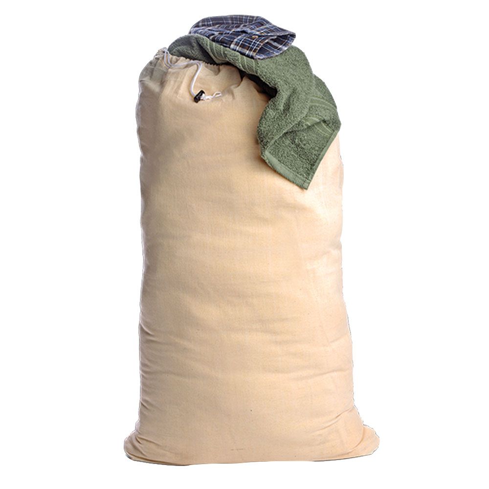 Washable natural cotton with a sewn in drawstring and convenient cordlock.