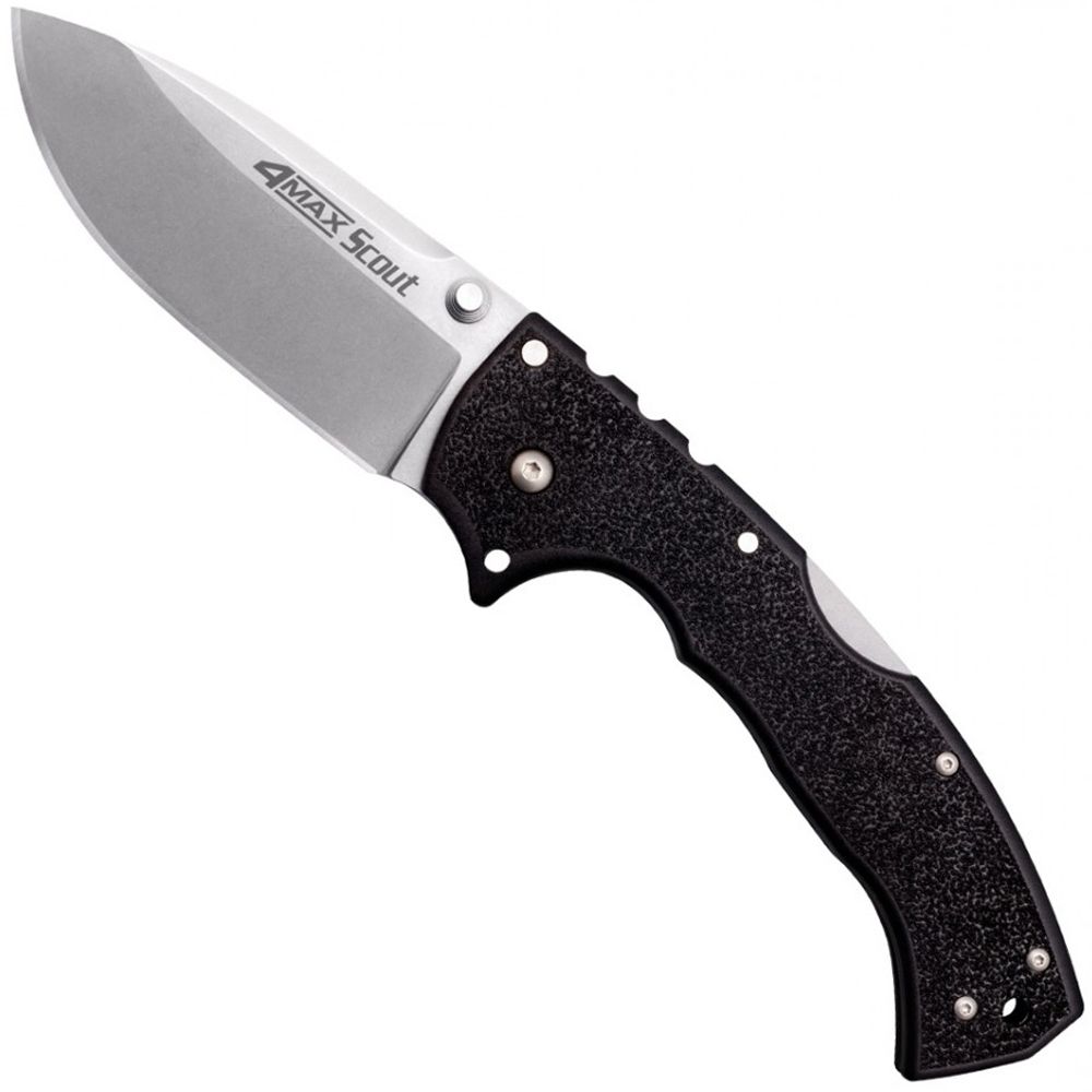 The original 4 Max proved to be all that we hoped for. But it was expensive and difficult to manufacture and deliver in a timely manner to meet customer demand. The 4 Max Scout is easier to produce and is a far more affordable alternative. It features an extra wide, drop point blade and stone wash finish, which is identical to the original 4 Max. It’s crafted from 5mm thick AUS 10A steel, for strength, toughness and edge holding potential. The handle’s silhouette mirrors the original. Instead of a G-10 handle the 4 Max Scout has one made of Griv-Ex with stainless steel liners and a Griv-Ex back spacer. Equipped with Andrew Demko’s ground breaking Tri-Ad locking mechanism the 4 Max Scout has passed every one of our grueling shock and impact tests and then gone on to hold 600 lbs. of free hanging weight with no damage!