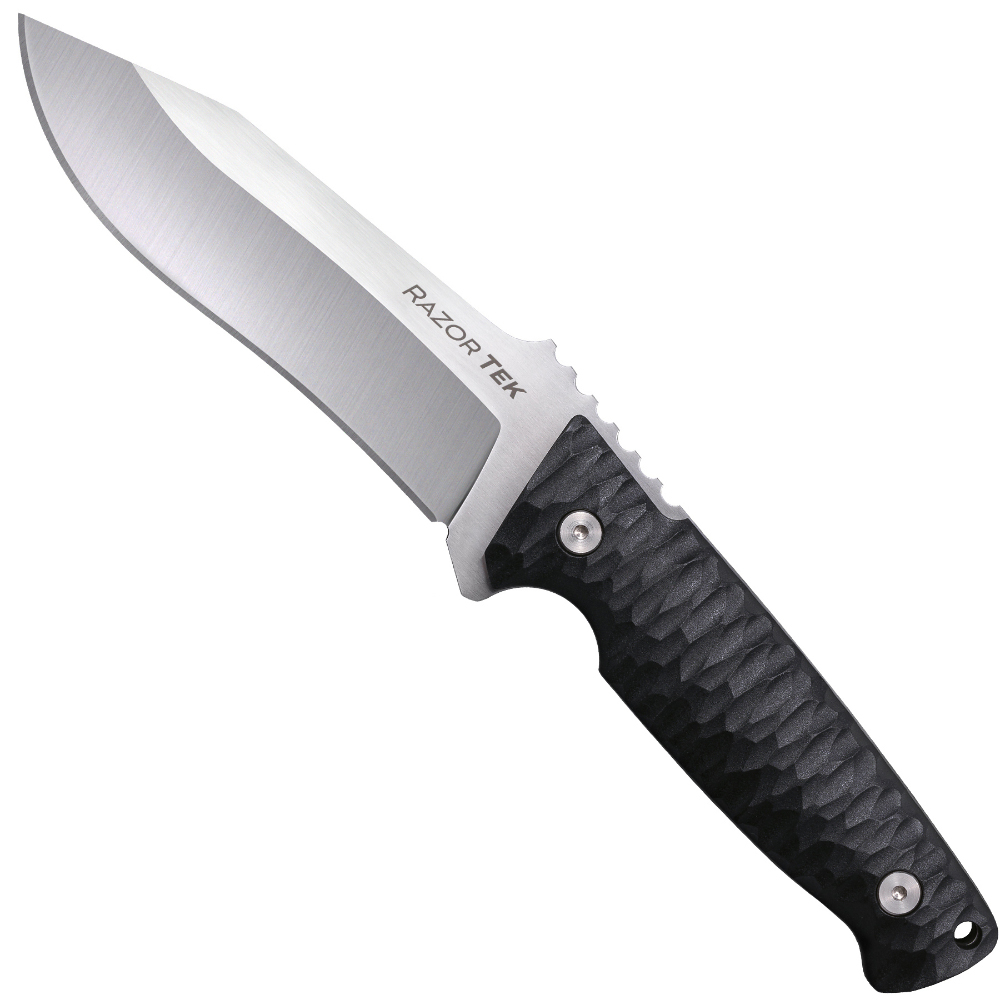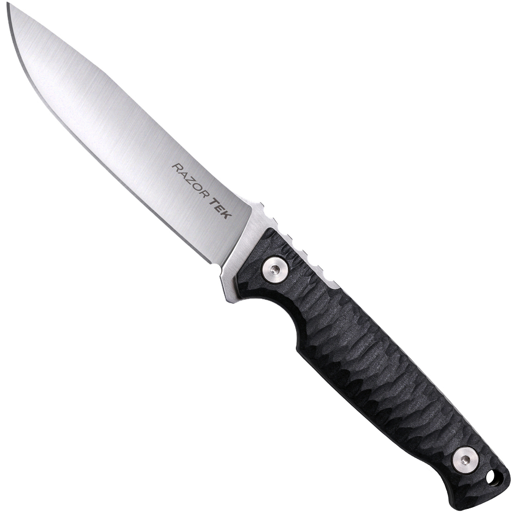 This knife was designed to fill a variety of tasks. Primarily intended for an EDC knife for this that prefer a fixed blade over folder. The textured scales and jimping on the spine offer a secure grip. The blade shape is diverse and can be used for law enforcement, Bushcraft, field dressing of small game, and other light chores. The sheath offers several carry options from neck to belt, and the ability to lash to a pack. Includes Secure-Ex sheath.