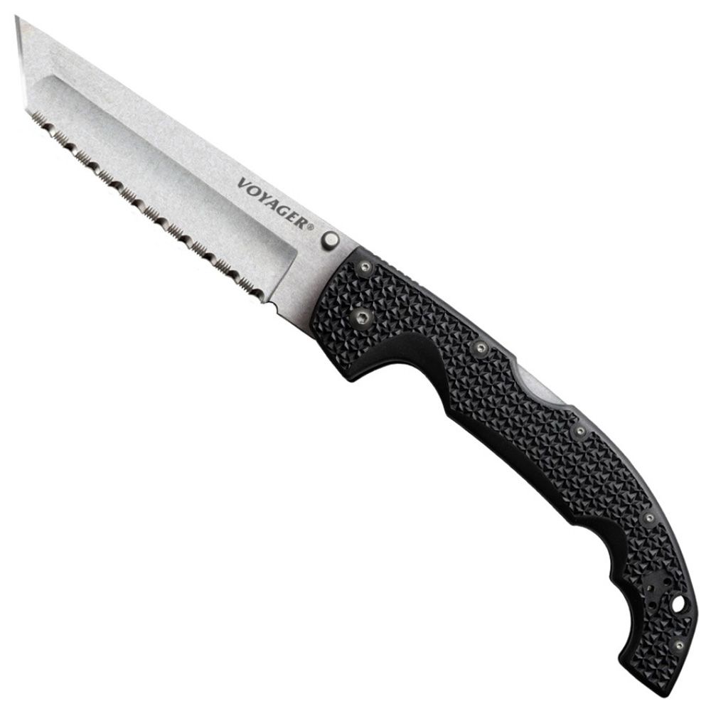 The Cold Steel Voyager series is designed to be the true “everyman” knife. Lightweight, comfortable, super sharp, they are rugged, dependable and perfect for hunting and camping as well as general utility and daily cutting chores. The Voyagers excel in many survival and rescue applications, and they have proven to be very popular with Police and Military personnel, who appreciate the combination of cutting performance and safety that they offer. Each knife in our extensive Voyager series is precision engineered and held to our most exacting standards. Featuring American made Carpenter CTS BD1 Alloy Blades, and our Tri-Ad locking mechanism - which is quite possibly the most secure, safe and shock resistant lock on the market today! The Voyagers ergonomic Griv-Ex handles (reinforced with heat treated 6061 aluminum liners) provide both great comfort and a secure grip even under extended use in tough conditions. Available in two sizes and with numerous blade and edge configurations, there’s a Voyager for everyone!