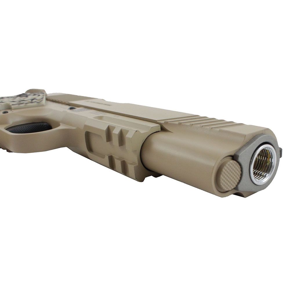 The Colt 1911 Rail Airsoft gun is a hard-hitting sidearm designed for high-performance airsoft action. With fully licensed Colt trademarks, this pistol delivers a realistic feel and powerful recoil thanks to its CO2 blowback system. The metal slide and frame give it the durability needed for field use, while the ambidextrous safety and grip safety add handling confidence. A 20mm rail beneath the barrel lets you gear up with your favorite attachments for added tactical utility.