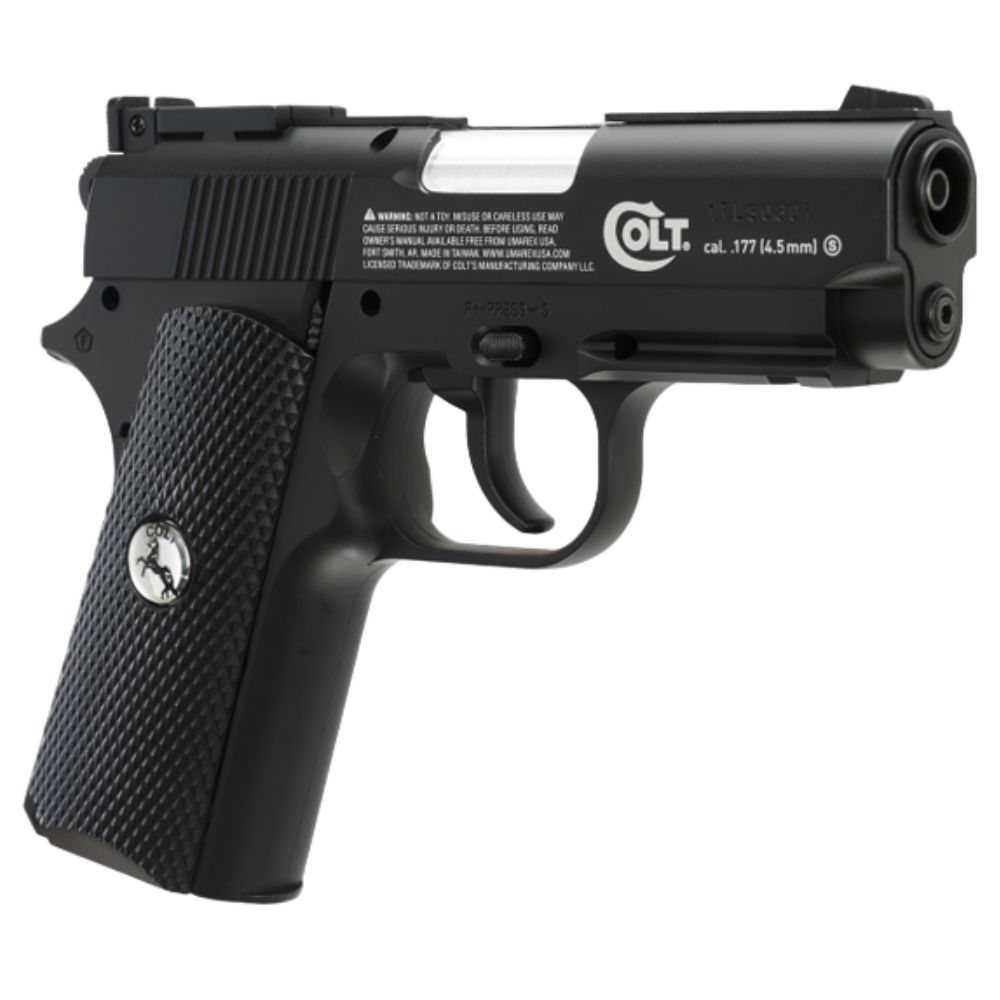 Behold the Umarex Colt Defender CO2 BB Pistol, a pinnacle of craftsmanship and functionality. With an all-metal build, this .177 caliber beauty boasts a 16-round internal BB magazine for non-stop shooting. Powered by a 12g CO2 cartridge ingeniously nestled in its grip, it offers effortless handling with a spring-powered release. Equipped with a fixed blade front sight, it ensures precise aiming. Weighing a realistic 1.6 lbs, it delivers a potent 410 FPS, making it a choice companion for both recreation and training.