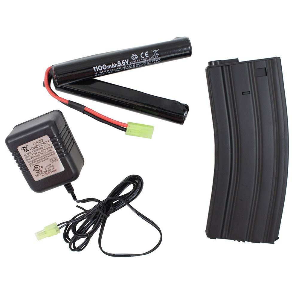 The Colt M4 Commando AEG Sportline - Black is a great all black airsoft M4 gun. Complete starter kit made by Cyma. Fully licensed Colt trademarks/logo M4 airsoft carbine. Full metal Cyma gearbox. Gun is solid high quality polymer built on the exterior with some metal components. A solid M4 AEG with original Colt trademarks. The commando is the shorter version of the original Carbine style. The Colt M4 has a metal quality gearbox, type version 2. This M4 is compatible with all M4 spare magazine types, V2 gearbox accessories, and M4 accessories.