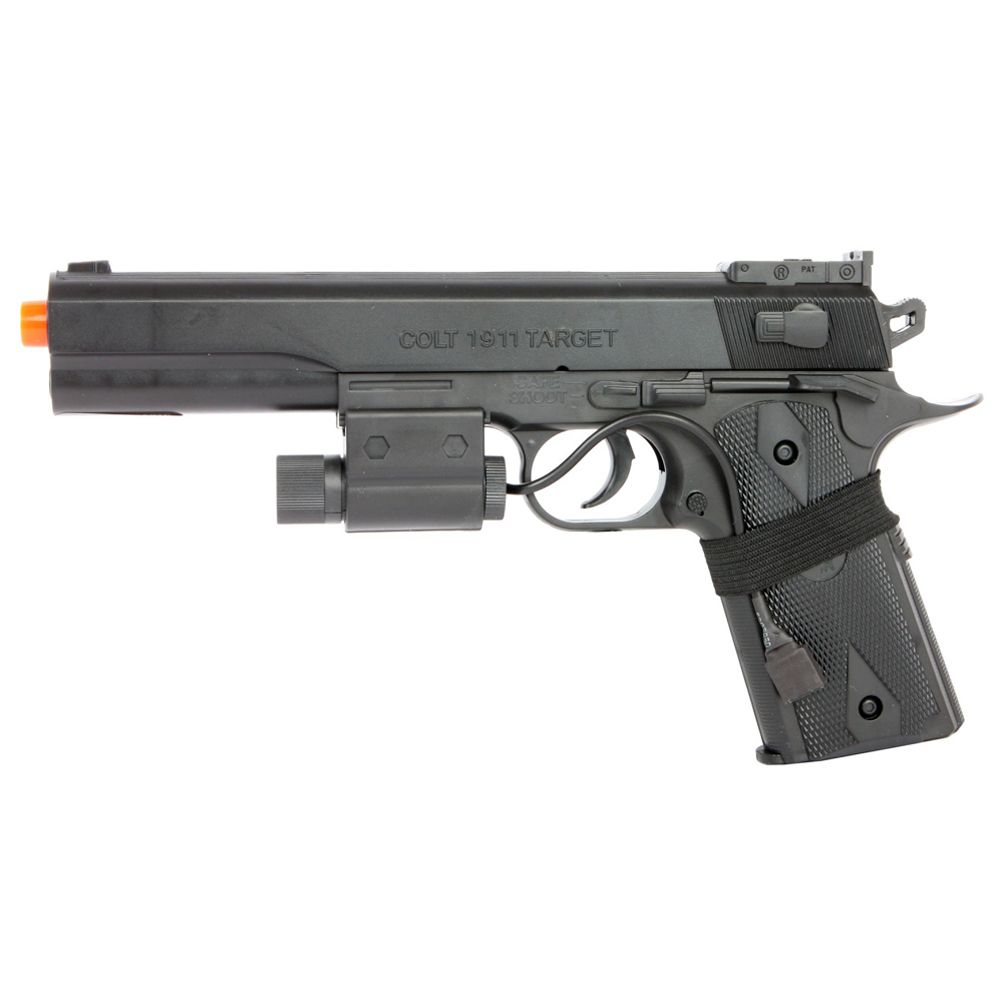 Fully licensed by Colt, this Cybergun On-Duty Kit is fully equipped with an M4 RIS rifle, 1911 pistol, and tactical accessories for instant airsoft play out of the package. These spring-powered guns are lightweight and affordable, ideal for beginners to airsoft. Included are a vertical grip, flashlight, laser, and 500 rounds of BBs.