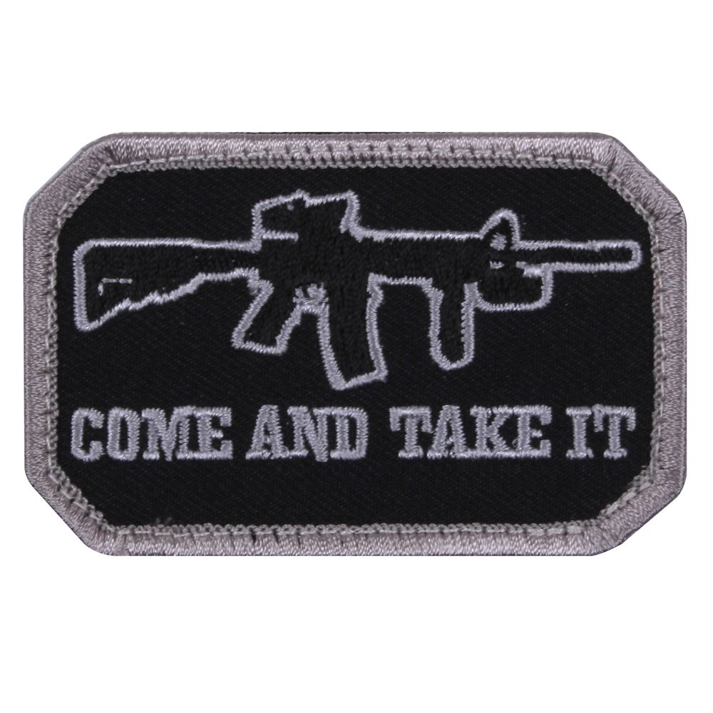 A morale patch measuring (1 7/8" x 3") that features the phrase "Come and Take It" as well as the outline of a rifle. Show people you're not one to be messed with while wearing this morale patch. The nylon hook back allows the morale patch to easily attach to your favorite hat or tactical jacket.